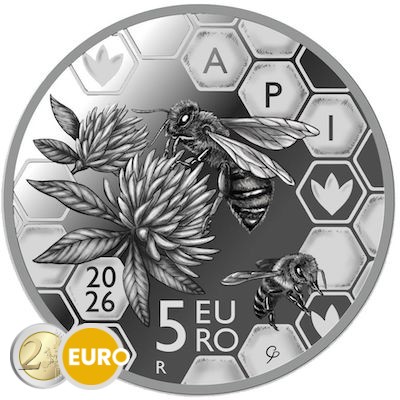 Con las monedas de 1 céntimo a 2 euros + Moneda de 5 euros conmemorativa Abejas plata