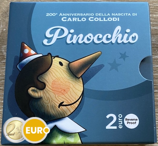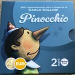Diese 2 Euro Gedenkmünze Italiens 2026 würdigt den 200. Geburtstag von Carlo Collodi, dem italienischen Autor, der mit der Geschichte von Pinocchio weltbekannt wurde. Die nationale Seite zeigt eine lebhafte Darstellung von Pinocchio mit seiner markanten langen Nase, dessen Schatten zum sprechenden Grille blickt – ein Symbol für die Fantasie und die moralischen Lehren des Klassikers. Oben steht „CARLO COLLODI 1826 – 2026“, unten „PINOCCHIO“. Diese Münze ehrt eine der bekanntesten Figuren der Literatur und das kulturelle Erbe Italiens.