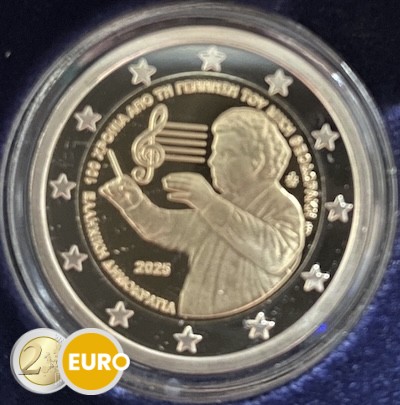 This 2 euro commemorative coin honors the 100th anniversary of the birth of Mikis Theodorakis, a legendary Greek composer and conductor. His music, including the famous Sirtaki, embodies Greek culture and the fight for freedom and justice.