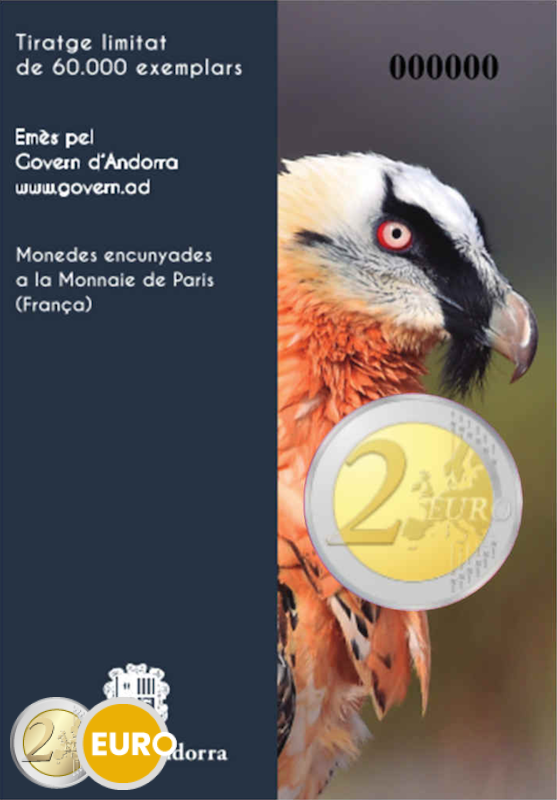Deze munt is opgedragen aan de lammergier (Gypaetus barbatus), een van de meest emblematische vogels van de Andorrese Pyreneeën. Deze gierensoort, herkenbaar aan het dichte verenkleed en de haakvormige snavel, staat momenteel op de lijst van bedreigde diersoorten. Met deze uitgifte wil Andorra het belang van bescherming en behoud van zijn soort benadrukken.