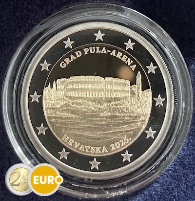Deze 2 euro herdenkingsmunt eert het Amfitheater van Pula, een van de best bewaarde Romeinse arena’s ter wereld. Dit indrukwekkende bouwwerk uit de 1e eeuw is een symbool van Kroatië’s rijke erfgoed en geschiedenis.