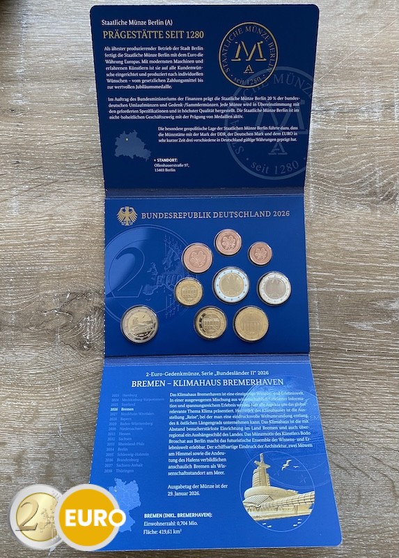 Met de munten van 1 cent tot 2 euro + 2 euro herdenkingsmunt Bremen