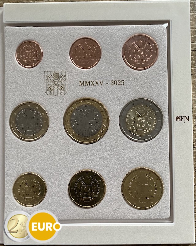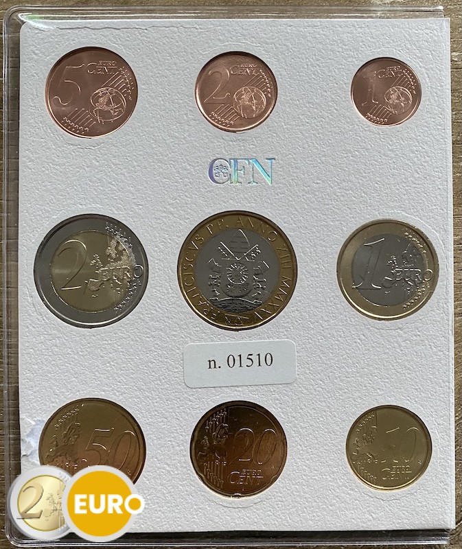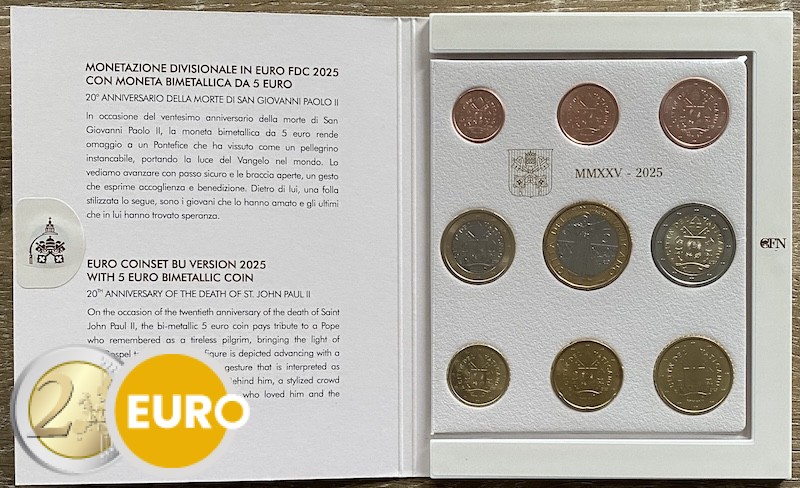 Met de munten van 1 cent tot 2 euro + 5 euro 20 jaar overlijden Paus Johannes Paulus II